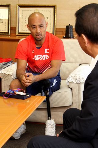 リオ2016パラリンピック陸上男子走り幅跳び銀メダリストで掛川市出身の山本篤さんが9月25日、掛川市役所を訪れ、松井市長に世界選手権での銀メダル獲得を報告しました。